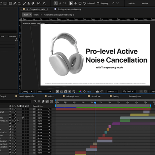 In today’s competitive market, a compelling product demo video can make all the difference in showcasing a brand’s innovation and design. With this project, I set out to create a visually striking and immersive product demo video for Apple’s AirPods Max, blending motion graphics, branding, and sound design to highlight its premium build, advanced features, and seamless user experience. The goal was to craft a polished and engaging visual story that aligns with Apple’s signature aesthetic and effectively communicates the product’s standout qualities.