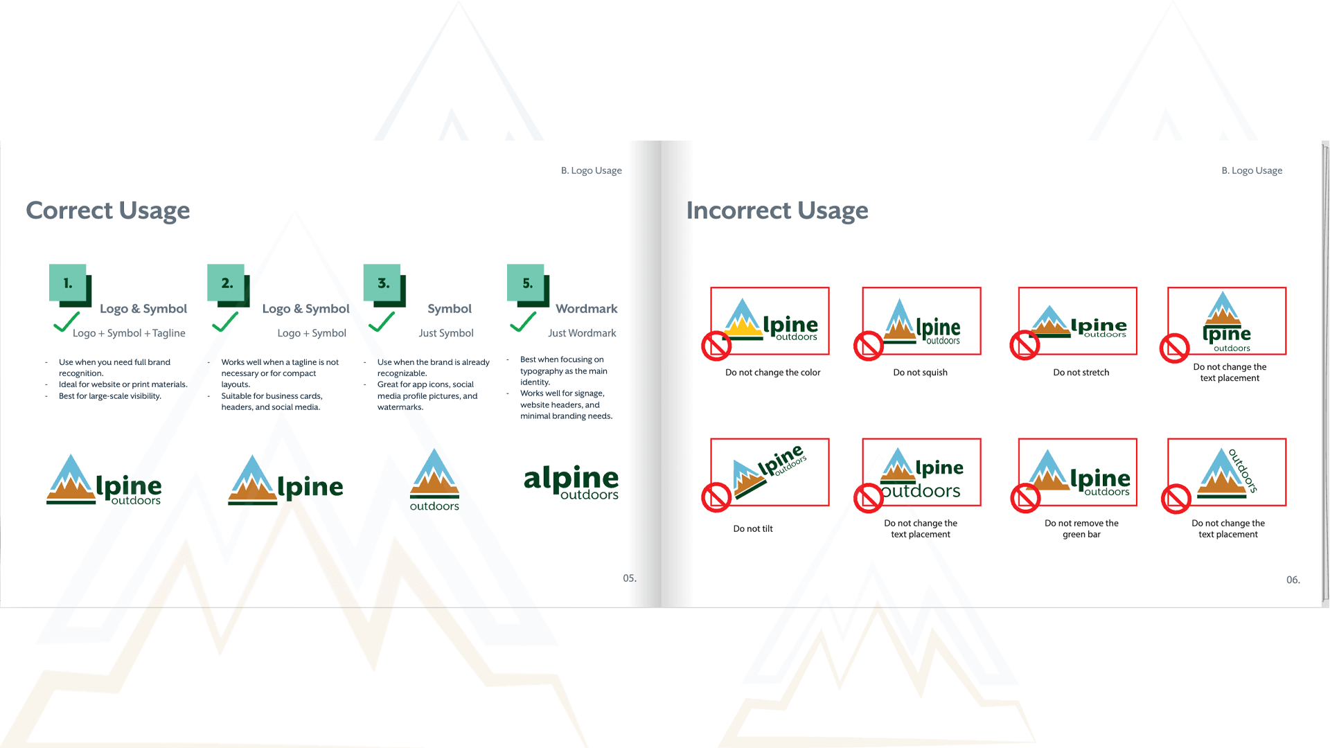 Alpine Outdoors is a retailer offering premium gear for men and women passionate about exploring nature. The brand is recognized for its exceptional apparel and unique shopping experiences. By engaging with its products, customers discover Alpine Outdoors' distinctiveness, exclusivity, and core values, deepening their connection with the brand. Visual identity guidelines are key to maintaining consistency across all touchpoints. They ensure a unified brand presence across platforms and provide clarity for teams, delivering a memorable message that resonates with customers.
